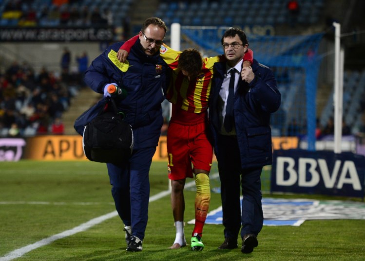 A real gravidade da lesão só será apurada amanhã, quando o avançado realizar exames complementares mas o emblema catalão tratou de afastar um cenário mais dramático que seria a de uma eventual fractura.